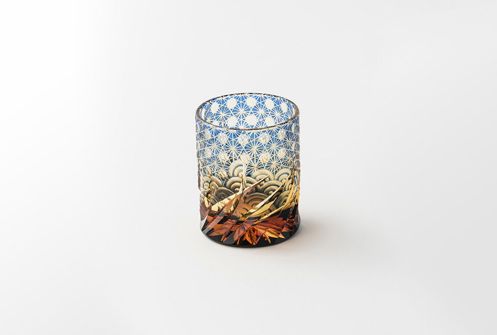 オンラインショップで購入墨田区で3代に渡り江戸切子を作り続ける、「玻璃匠 山田硝子」。3代目の山田真照氏は、伝統的な幾何学模様や、植物・動物をほる花切子を得意とし、独創的な作品を生み出しています。