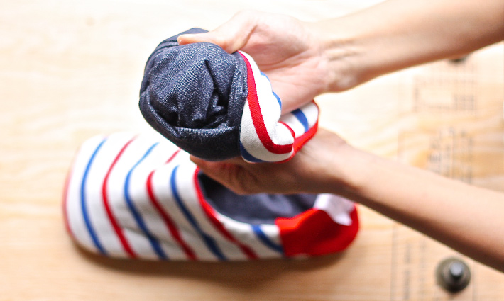 底が柔らかいので、くるりと裏返せて、リバーシブルで使える。
