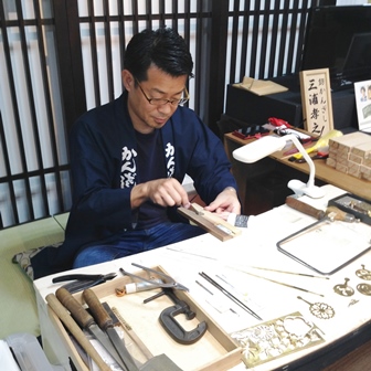 4代続く、かんざし職人の工房。4代目の三浦孝之(たかし)氏はグラフィック・デザインの道から転身して、家業を継いだ。動植物をテーマに、歌舞伎や日本舞踊などで使われる、錺かんざしを手掛ける一方、一般用の小振りな物も製作している。