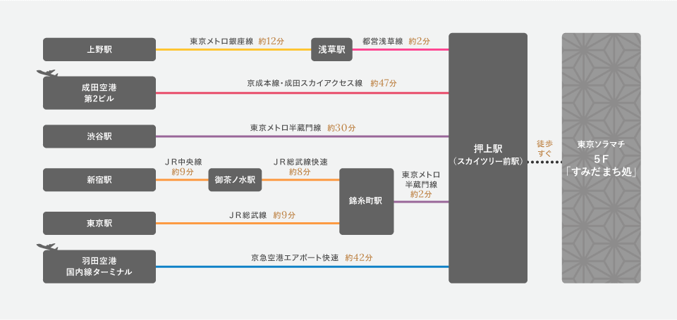 「押上(スカイツリー前)駅」までのアクセスと所要時間