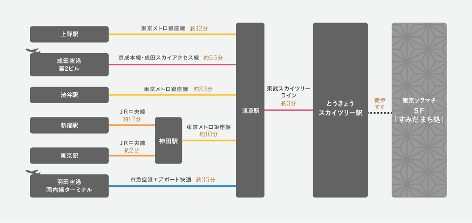「とうきょうスカイツリー駅」までのアクセスと所要時間