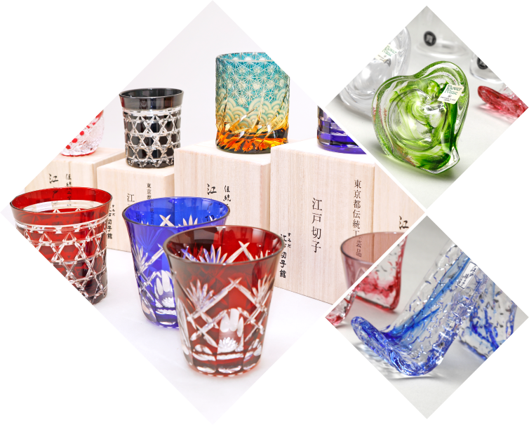 Glass大正時代から運河の輸送網を利用する硝子工場が発展しました。最初に作られたのはランプホヤなどで、その後食器が生産されました。伝統工芸を継承している品として、現在も醤油注ぎや江戸切子のグラスなどが人気を集めています。