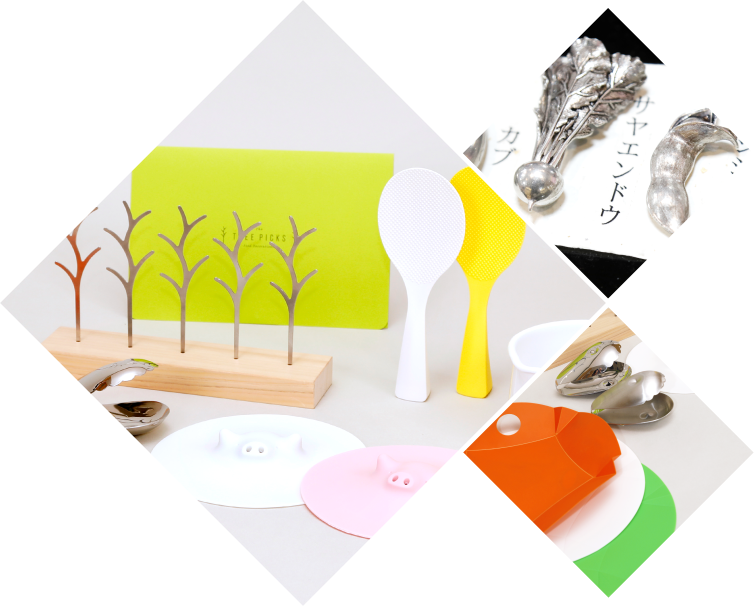 Dishes墨田区には食器の製造を専業とする企業でなくとも、持ち前の技術を生かして商品としてキラリと光る商品を生み出している企業がいくつもあります。プラスチック成型会社のお皿、バネメーカーのトング、家庭用品メーカーの立つしゃもじ、などです。